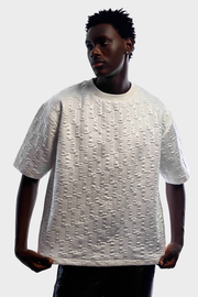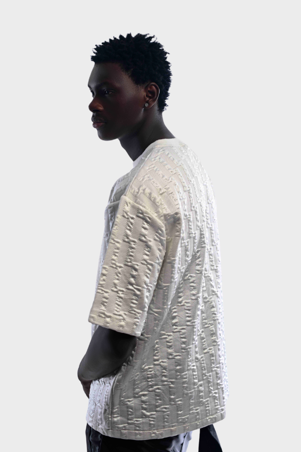 shop the limited edition rare silvery white T-shirt with a fluorescent glo, rich in ultraviolet light in what seems to produce in appearance the effect of changing, moving, and living form of silver.