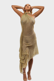 The Nazarene Amictus Ruffle Vintage Gold Mesh Dress is designed to reveal but yet conceal the scars that lie underneath the skin. Inspired by the illusion of the flesh and not of the spirit.